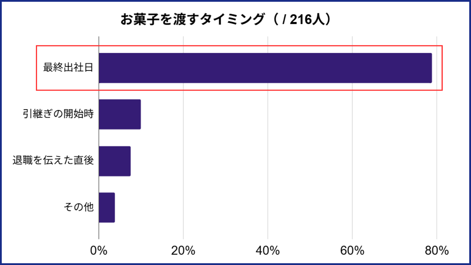 実際にリクナビネクストの調査結果でも退職日にお菓子を渡している人が多いようでした。