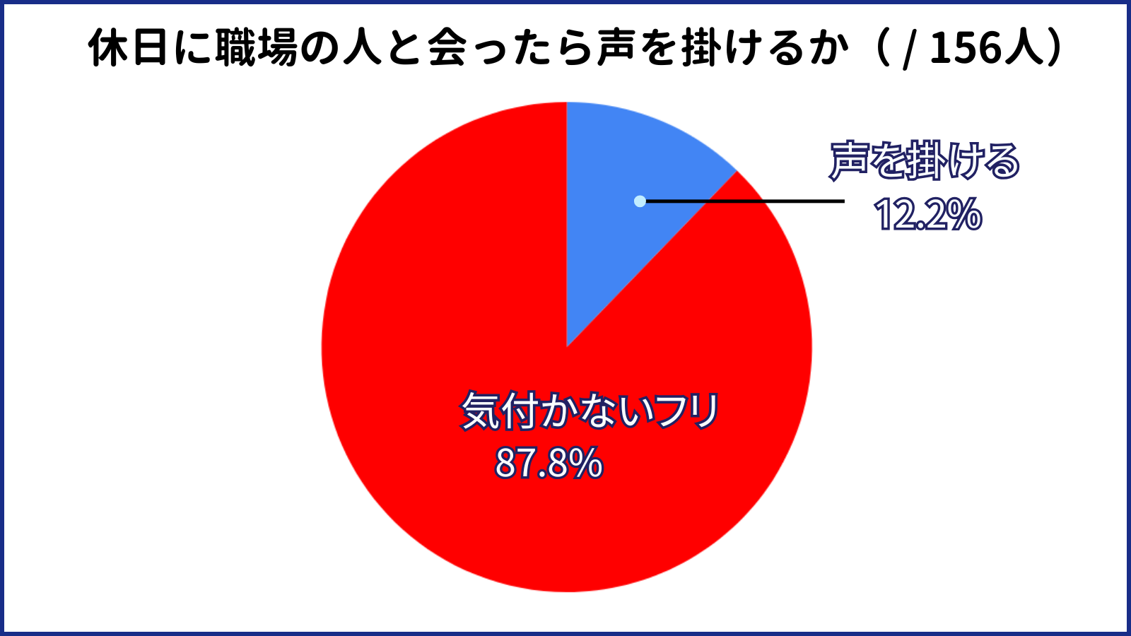 実際アンケート結果では、約88%の人が休日に職場の人と会っても声を掛けないと答えています。