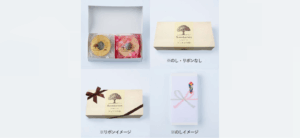1つ目のバームクーヘン(4個入)は のし や リボン を入れることも可能です。