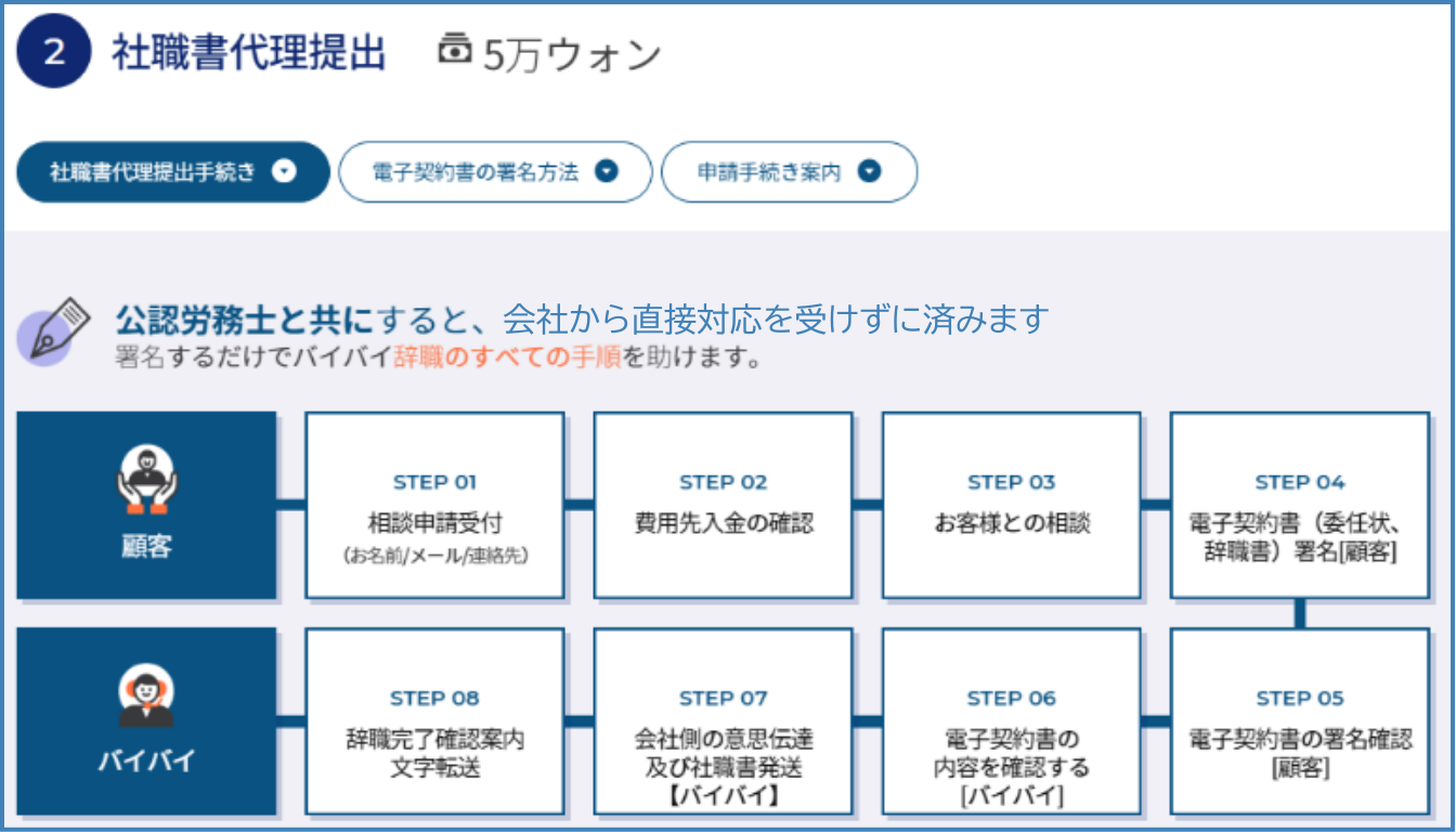 韓国の退職代行業者の例