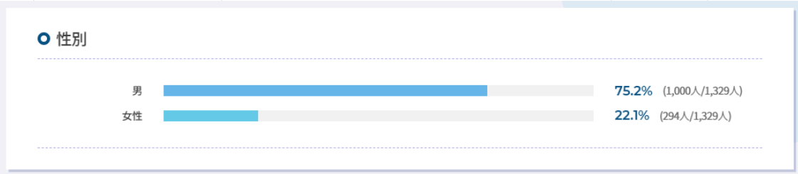 性別に関しては、男性の利用者数が約75%と多いようです。