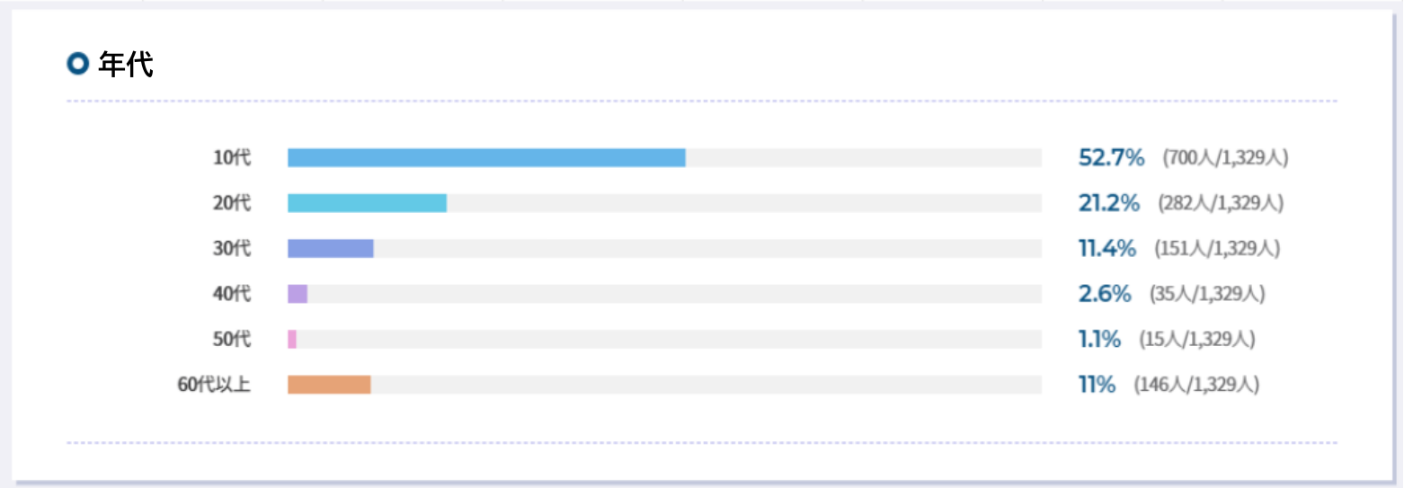 10代(全体の約53%)の方が遥かに多く利用しているようですね。